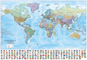Political World Map on curved projection – huge canvas (UK free delivery)