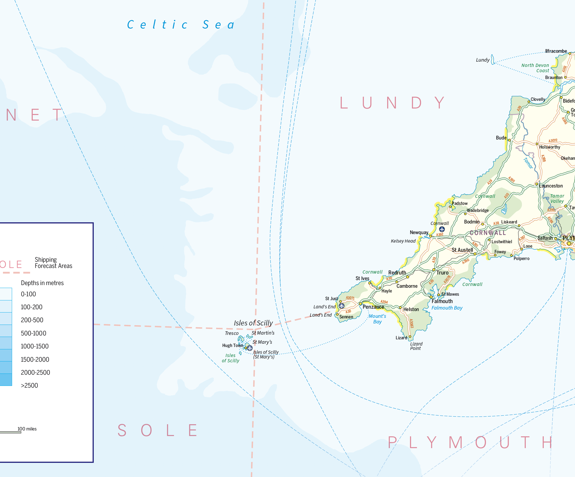British Isles map with Shipping Forecast Areas